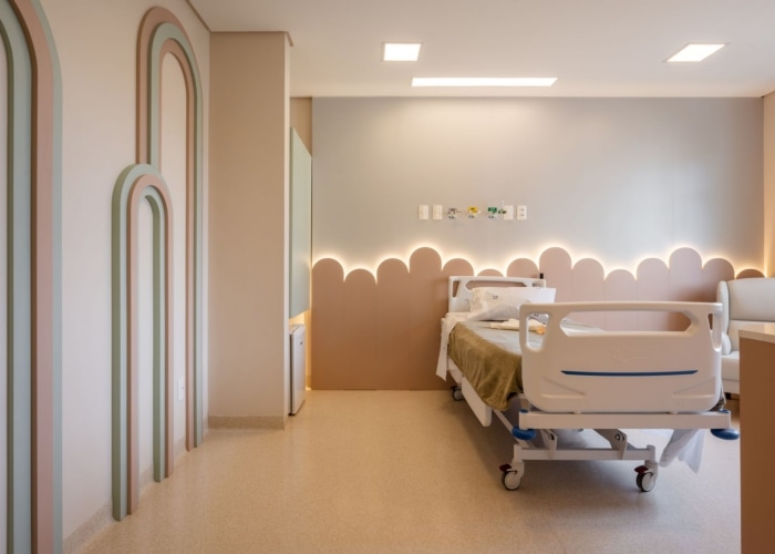 A+P arquitetura humanizada’s Dr. Cláudio Dalmaz Maternity Ward at São Pedro Hospital in Garibaldi redefines hospital experience through vibrant design, prioritizing comfort and humanization for patients and their families.