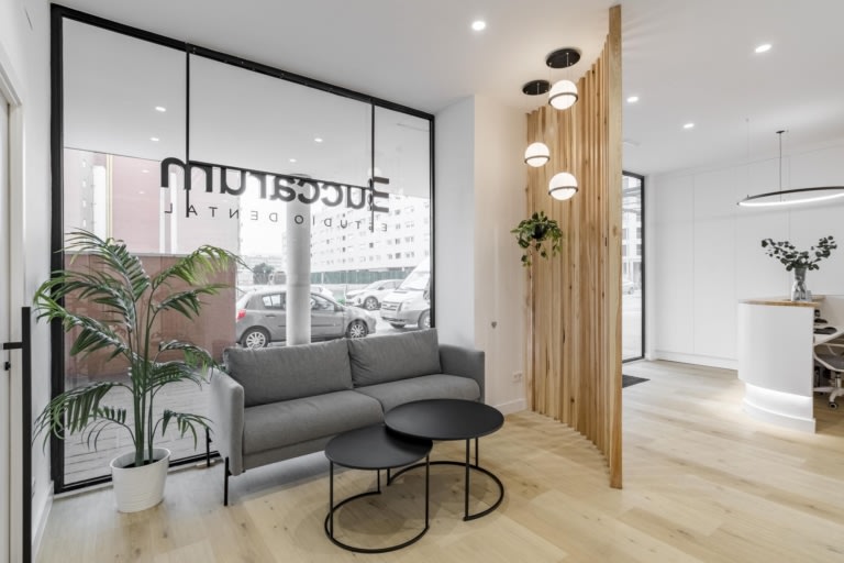 Buccarum Clinic View Project Alem Arquitectura David Ballester Branding, Cove Lighting, Pendant Lighting, Plants, Recessed Downlight, Waiting Area