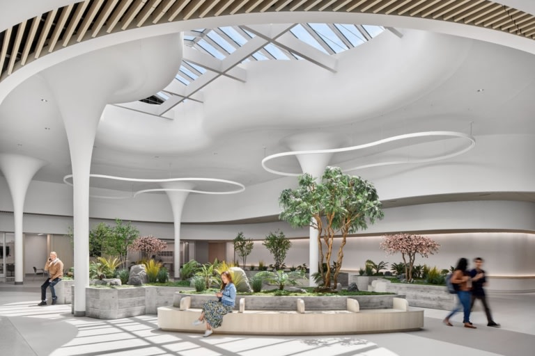 NEMS PACE San Jose Center View Project IA Interior Architects Garrett Rowland Column, People, Plants, Waiting Area