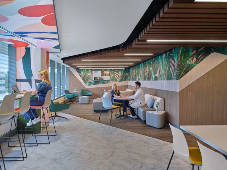 Deborah Heart & Lung Center - Olsen Family Patient Care Pavilion View Project EwingCole Halkin | Mason Photography Gobi by SitOnIt Seating People, Table Lamp, Waiting Area, Wall Graphics