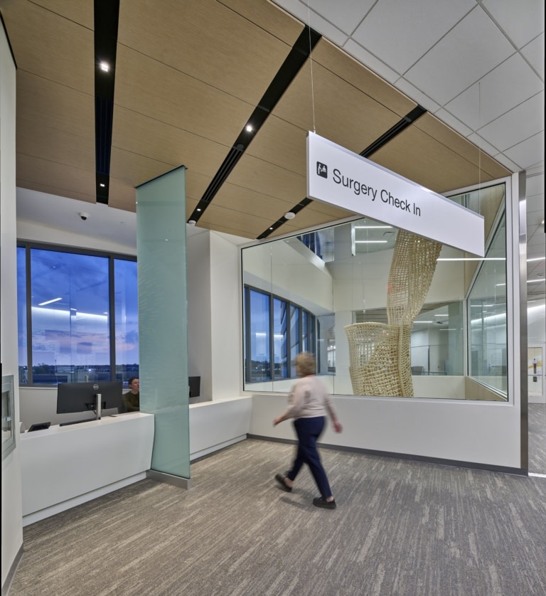 University of Iowa Health Care North Liberty Campus View Project HKS Neumann Monson Architects Cameron Campbell Glass Walls, People, Reception Area, Signs & Wayfinding