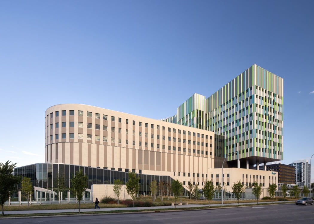 Reminiscent of two figures embracing, the exterior form offers an iconic symbol of hope, while the lower podium welcomes a human-scaled arrival experience and intuitive wayfinding. The entrance establishes a strong visual connection to the building’s heart: a beautifully landscaped central courtyard surrounding a sacred space. Access to light throughout was prioritized, including in the basement (vault) areas which draw in daylight with light wells and clerestories. Connected to the Foothills Medical Centre and the University of Calgary by way of a two-story connector, the Centre has over 100 patient exam rooms, 160 inpatient beds, 100+ chemotherapy chairs, and leading-edge technology and laboratories—greatly expanding access to cancer treatment for Albertans.